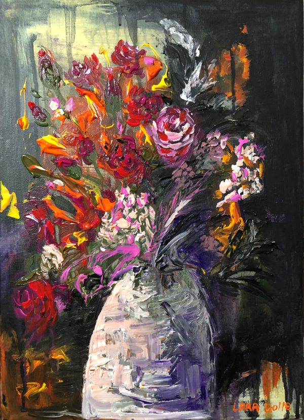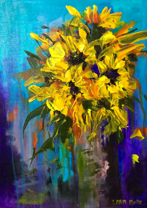My pieces are created with vibrant, bold colour utilizing watercolour, acrylics and other mixed media. Where possible, the additional use of texture to enhance the visual experience further.